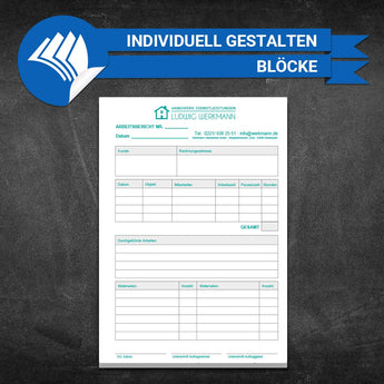 Optimieren Sie Ihren Arbeitsprozess mit unseren individuell anpassbaren Arbeitsberichten für Handwerker. Unsere DIN A4-Formulare mit Durchschreibesätzen ermöglichen Ihnen eine effiziente Erfassung von Arbeitsdetails. Personalisieren Sie sie nach Ihren Bedürfnissen und behalten Sie eine klare und präzise Dokumentation Ihrer Projekte. Erleichtern Sie sich den Alltag und optimieren Sie Ihre Arbeitsabläufe mit unseren hochwertigen Arbeitsberichten.