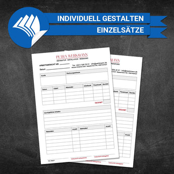 Optimieren Sie Ihren Arbeitsprozess mit unseren individuell anpassbaren Arbeitsberichten für Handwerker. Unsere DIN A4-Formulare mit Durchschreibesätzen ermöglichen Ihnen eine effiziente Erfassung von Arbeitsdetails. Personalisieren Sie sie nach Ihren Bedürfnissen und behalten Sie eine klare und präzise Dokumentation Ihrer Projekte. Erleichtern Sie sich den Alltag und optimieren Sie Ihre Arbeitsabläufe mit unseren hochwertigen Arbeitsberichten.