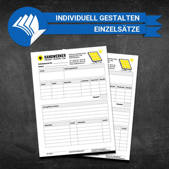Optimieren Sie Ihren Arbeitsprozess mit unseren individuell anpassbaren Arbeitsberichten für Handwerker. Unsere DIN A4-Formulare mit Durchschreibesätzen ermöglichen Ihnen eine effiziente Erfassung von Arbeitsdetails. Personalisieren Sie sie nach Ihren Bedürfnissen und behalten Sie eine klare und präzise Dokumentation Ihrer Projekte. Erleichtern Sie sich den Alltag und optimieren Sie Ihre Arbeitsabläufe mit unseren hochwertigen Arbeitsberichten.