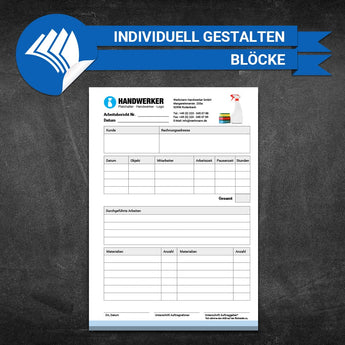 Optimieren Sie Ihren Arbeitsprozess mit unseren individuell anpassbaren Arbeitsberichten für Handwerker. Unsere DIN A4-Formulare mit Durchschreibesätzen ermöglichen Ihnen eine effiziente Erfassung von Arbeitsdetails. Personalisieren Sie sie nach Ihren Bedürfnissen und behalten Sie eine klare und präzise Dokumentation Ihrer Projekte. Erleichtern Sie sich den Alltag und optimieren Sie Ihre Arbeitsabläufe mit unseren hochwertigen Arbeitsberichten.