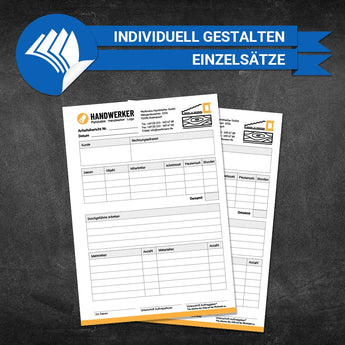 Optimieren Sie Ihren Arbeitsprozess mit unseren individuell anpassbaren Arbeitsberichten für Handwerker. Unsere DIN A4-Formulare mit Durchschreibesätzen ermöglichen Ihnen eine effiziente Erfassung von Arbeitsdetails. Personalisieren Sie sie nach Ihren Bedürfnissen und behalten Sie eine klare und präzise Dokumentation Ihrer Projekte. Erleichtern Sie sich den Alltag und optimieren Sie Ihre Arbeitsabläufe mit unseren hochwertigen Arbeitsberichten.