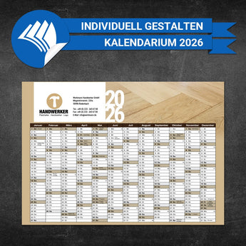 Jahresplaner für Handwerksbetriebe sind die ideale Lösung, um Baustellen, Termine und Urlaube auf einen Blick im Griff zu behalten. Die Wandkalender lassen sich mit Ihrem Logo, Ihren Farben und Kontaktdaten individuell gestalten und passen so perfekt zu Ihrem Firmenauftritt. Praktisch im Alltag, stark in der Wirkung – auch als nützliches Werbegeschenk für Geschäftskunden und Partner.