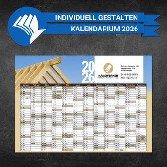 Jahresplaner für Handwerksbetriebe sind die ideale Lösung, um Baustellen, Termine und Urlaube auf einen Blick im Griff zu behalten. Die Wandkalender lassen sich mit Ihrem Logo, Ihren Farben und Kontaktdaten individuell gestalten und passen so perfekt zu Ihrem Firmenauftritt. Praktisch im Alltag, stark in der Wirkung – auch als nützliches Werbegeschenk für Geschäftskunden und Partner.