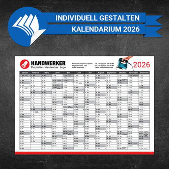 Jahresplaner für Handwerksbetriebe sind die ideale Lösung, um Baustellen, Termine und Urlaube auf einen Blick im Griff zu behalten. Die Wandkalender lassen sich mit Ihrem Logo, Ihren Farben und Kontaktdaten individuell gestalten und passen so perfekt zu Ihrem Firmenauftritt. Praktisch im Alltag, stark in der Wirkung – auch als nützliches Werbegeschenk für Geschäftskunden und Partner.