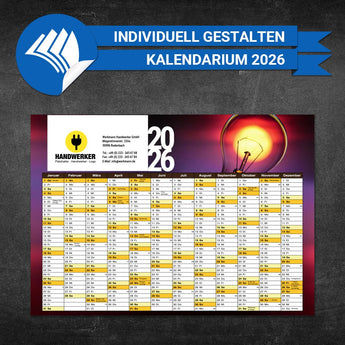 Jahresplaner für Handwerksbetriebe sind die ideale Lösung, um Baustellen, Termine und Urlaube auf einen Blick im Griff zu behalten. Die Wandkalender lassen sich mit Ihrem Logo, Ihren Farben und Kontaktdaten individuell gestalten und passen so perfekt zu Ihrem Firmenauftritt. Praktisch im Alltag, stark in der Wirkung – auch als nützliches Werbegeschenk für Geschäftskunden und Partner.