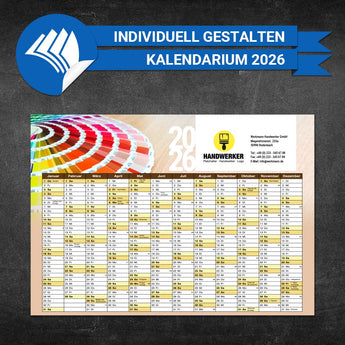 Jahresplaner für Handwerksbetriebe sind die ideale Lösung, um Baustellen, Termine und Urlaube auf einen Blick im Griff zu behalten. Die Wandkalender lassen sich mit Ihrem Logo, Ihren Farben und Kontaktdaten individuell gestalten und passen so perfekt zu Ihrem Firmenauftritt. Praktisch im Alltag, stark in der Wirkung – auch als nützliches Werbegeschenk für Geschäftskunden und Partner.