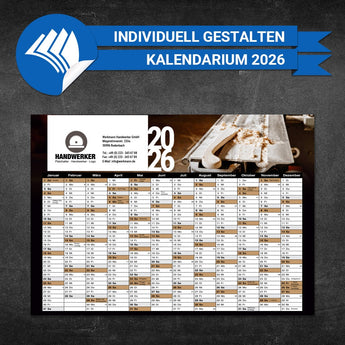 Jahresplaner für Handwerksbetriebe sind die ideale Lösung, um Baustellen, Termine und Urlaube auf einen Blick im Griff zu behalten. Die Wandkalender lassen sich mit Ihrem Logo, Ihren Farben und Kontaktdaten individuell gestalten und passen so perfekt zu Ihrem Firmenauftritt. Praktisch im Alltag, stark in der Wirkung – auch als nützliches Werbegeschenk für Geschäftskunden und Partner.