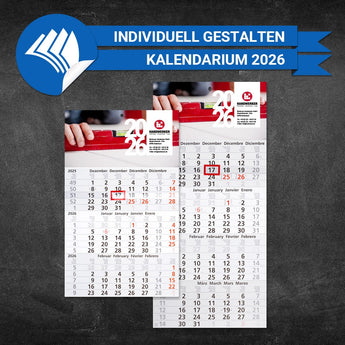 Schicker 3- bzw. 4-Monatskalender für Handwerker zum Planen, Organisieren und Strukturieren Ihrer persönlichen Termine. Mit drei oder vier Monaten auf einen Blick. Am Kopf haben Sie 300x150mm Platz für ihre Werbung. Sie können das dargestellte Design in unserem Editor komplett Ihren Wünschen entsprechend verändern.