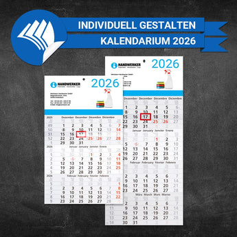 Schicker 3- bzw. 4-Monatskalender für Handwerker zum Planen, Organisieren und Strukturieren Ihrer persönlichen Termine. Mit drei oder vier Monaten auf einen Blick. Am Kopf haben Sie 300x150mm Platz für ihre Werbung. Sie können das dargestellte Design in unserem Editor komplett Ihren Wünschen entsprechend verändern.