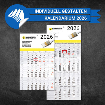 Schicker 3- bzw. 4-Monatskalender für Handwerker zum Planen, Organisieren und Strukturieren Ihrer persönlichen Termine. Mit drei oder vier Monaten auf einen Blick. Am Kopf haben Sie 300x150mm Platz für ihre Werbung. Sie können das dargestellte Design in unserem Editor komplett Ihren Wünschen entsprechend verändern.