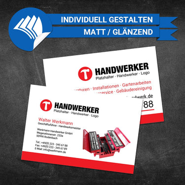 Jetzt Visitenkarten für Handwerker online gestalten und drucken lassen – präzise, hochwertig und perfekt für den täglichen Einsatz bei Ihren Kunden.
