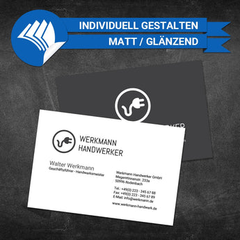 Erstellen Sie Ihre professionelle, personalisierte Visitenkarte für Handwerker. Mit unserem benutzerfreundlichen Online-Editor können Sie Ihre Visitenkarten individuell anpassen und direkt bestellen. Zeigen Sie Ihren einzigartigen Stil und beeindrucken Sie potenzielle Kunden. Hochwertige Materialien und schnelle Lieferung inklusive. Erstellen Sie Ihre perfekte und einzigartige Visitenkarte noch heute!